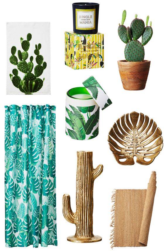 Cactus de cerámica o tela. Cortinas con colores complementarios que aporten un toque pop. Cristal, porcelana y ligeros textiles son los materiales que destacan en las tendencias en esta temporada de primavera-verano. Mesas de madera vestidas con velas y platos. Jarrones de diversos tamaños y marcos que llenen nuestras paredes de fotografías e ilustraciones.
