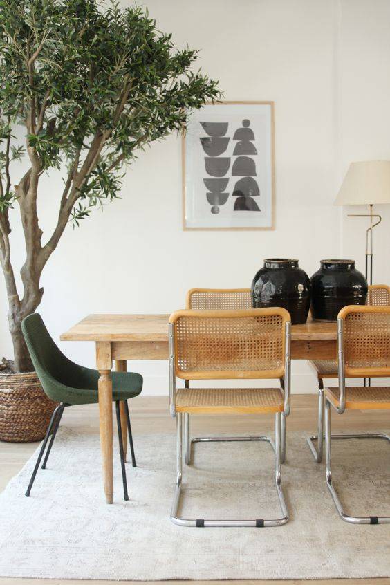 Nunca pueden faltar las plantas y las piezas elaboradas que respeten los acabados naturales. La madera, las fibras naturales, cerámicas hechas a mano darán un toque elegante y primaveral a tu hogar. Juguemos con los contrastes de colores y materiales. Basemos la decoración en un máximo de tres colores incluyendo blanco y lo tenemos.
